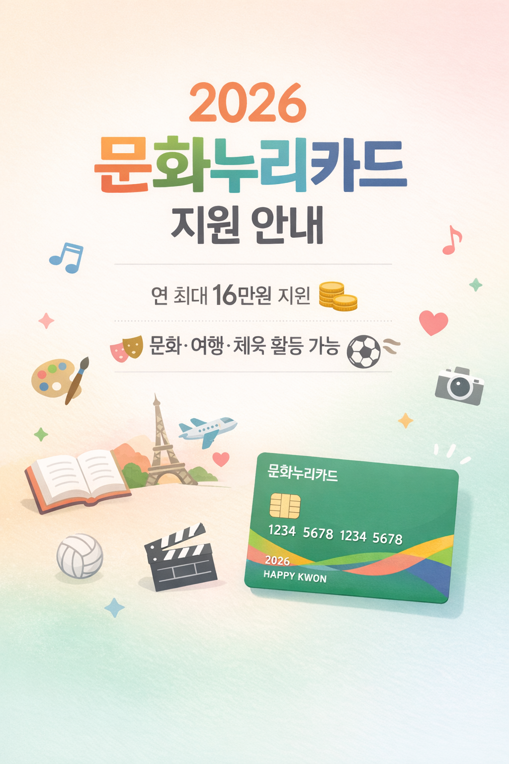 문화누리카드는 단순한 복지카드가 아니라 삶의 질을 높여주는 실질적인 지원 제도입니다.